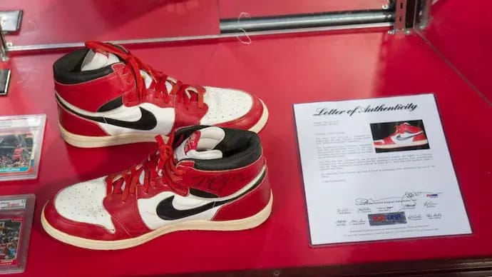 Nike’s own account describes something more layered. The black-and-red Air Jordan 1 became the symbol. But Nike has said the Nike Air Ship was the original shoe that drew league attention in the 1984–85 preseason.